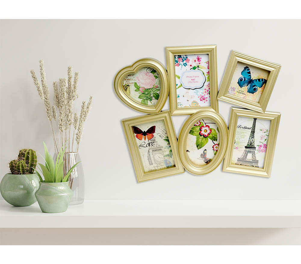 Сервис сравнения цен СкидкаГИД предлагает сравнить цены на товар «Мультирамка Fotografia 6 фото (4х 10x15 + 12.5х12.5 + 10х10 см) золотистый»