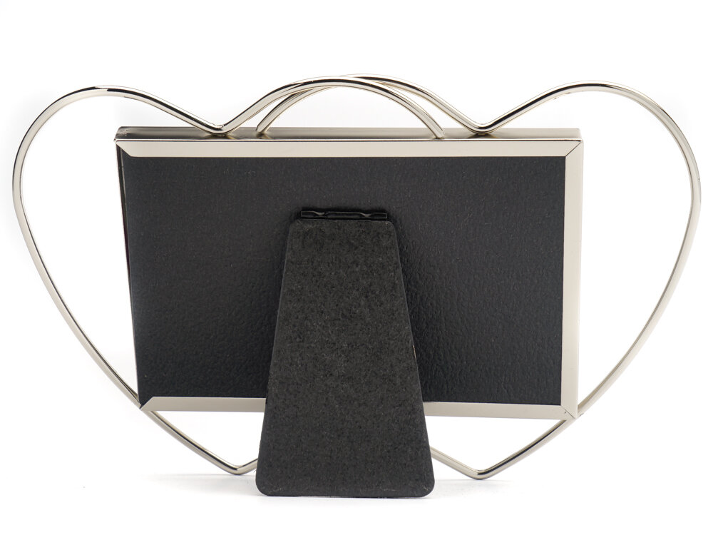 Стильная металлическая фоторамка золотистого цвета для фотографий формата 10х15 см. Сзади имеется ножка-подставка для установки на горизонтальную поверхность.