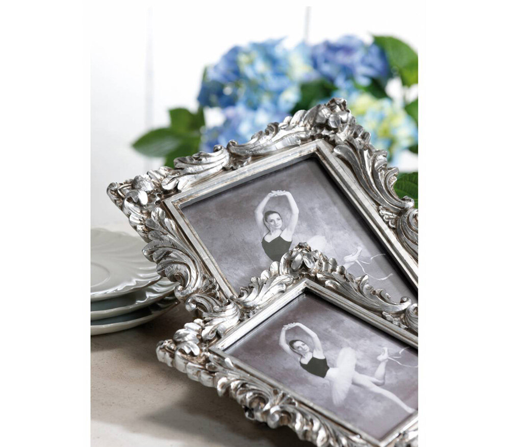 Рамка Walther S.Germain для фотографии формата 10х15 см. Резной багет в барочном стиле выполнен из полирезина (полимерный материал из смеси каменной крошки со смолой и красителями, похожий на керамику или камень) и покрыт серебристой краской «под металл». Рамка оснащена ножкой для расположения на столе или книжной полке. Минеральное стекло. Поставляется в картонной коробке.
