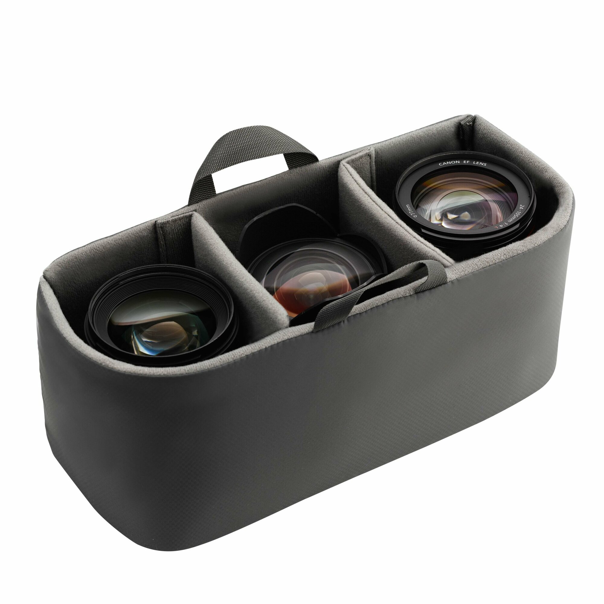 Предусмотрена съемная защитная вставка, которую можно использовать отдельно если вам не нужно все оборудование одновременно. Вы можете взять с собой 2-3 объектива и носить их в своей дорожной сумке или рюкзаке.