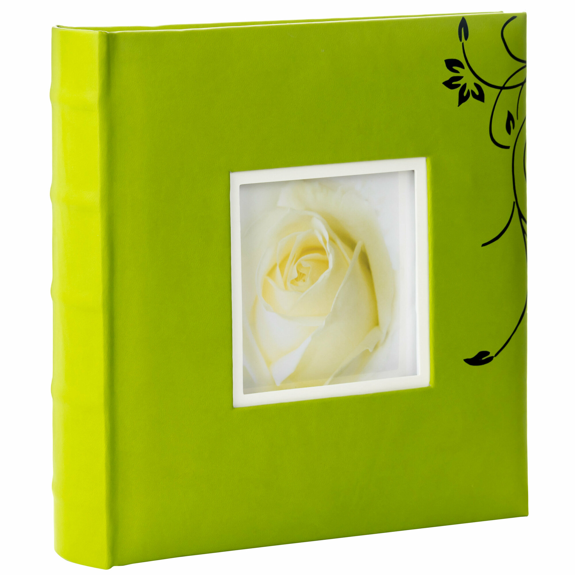 Альбом с кармашками для хранения 200 фотографий 10х15 см. Дизайн с растительным орнаментом хорошо подходит для семейных фотографий. В прозрачных кармашках фотографии надежно защищены от грязи, пыли, отпечатков пальцев. Со временем их можно легко поменять местами. Твердая обложка альбома обтянута искусственной кожей, в оконце на лицевой стороне обложки можно поставить вашу личную фотографию. Белые бумажные страницы с местами для подписи скреплены методом книжного переплета, по 2 фотографии на странице.