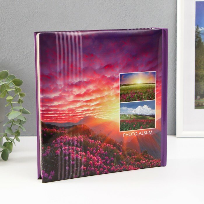 Альбом с кармашками для хранения 200 фотографий 10х15 см. Дизайн – красивый пейзаж, хорошо подходит для фотографий из отпуска или путешествия. В прозрачных кармашках фотографии надежно защищены от грязи, пыли, отпечатков пальцев. Со временем их можно легко поменять местами. Снимки размещаются по 2 на странице, рядом есть место для подписи. Обложка альбома твердая, из плотного ламинированного картона, белые бумажные страницы закреплены с помощью книжного переплета.