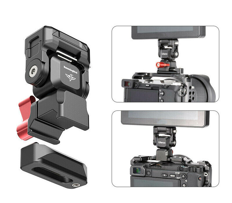 Подвижное крепление с быстросъёмной площадкой Hummingbird для утсановки монитора или другого оборудования на клетку или систему риг. В основании имеет крепление NATO, а наверху установочный винт 1/4"Быстросъемная площадка в верхней части имеет прорезиненное основание. Оно защищает от появления сколов и потертостей на корпусе установленного оборудования. Изготовлена из прочного алюминиевого сплава. Имеет крепление: 1/4", NATO Rail/Clamp Поворот: 360° Наклон: 240° Максимальная нагрузка: 1500 г Габариты: 56 × 49 мм Вес: 97 г Материал: алюминий Быстросъёмная площадка: Ulanzi Hummingbird