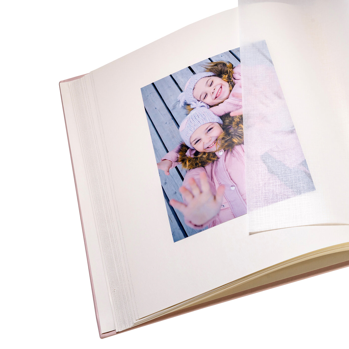 Традиционный альбом с белыми листами из плотной бумаги и вставками из пергамина (кальки). Размер листа: 29 х 32 см, книжный переплет. Оконце на обложке позволяет разместить личную фотографию. Фотографии крепятся на уголки, двухсторонние клейкие квадратики или фотоклей. Традиционные альбомы дают наиболее широкий простор для фантазии при оформлении: вы можете снабжать фотографии подписями, рисунками, наклейками, украшать бижутерией, добавлять вырезки, делать коллажи и так далее. Конечно, оформление такого альбома отнимает больше времени, но результат оправдывает все затраты: собственными руками вы создаете уникальный и очень личный альбом, который будет радовать вас и ваших потомков десятилетиями.
