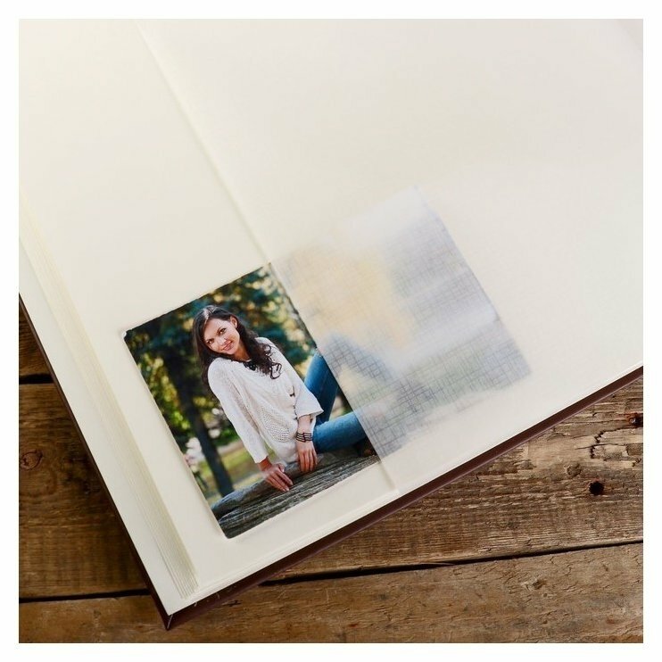 Традиционный альбом с белыми листами из плотной бумаги и вставками из пергамина (кальки). Размер листа: 29 х 32 см, книжный переплет. Оконце на обложке позволяет разместить личную фотографию. Фотографии крепятся на уголки, двухсторонние клейкие квадратики или фотоклей. Традиционные альбомы дают наиболее широкий простор для фантазии при оформлении: вы можете снабжать фотографии подписями, рисунками, наклейками, украшать бижутерией, добавлять вырезки, делать коллажи и так далее. Конечно, оформление такого альбома отнимает больше времени, но результат оправдывает все затраты: собственными руками вы создаете уникальный и очень личный альбом, который будет радовать вас и ваших потомков десятилетиями.