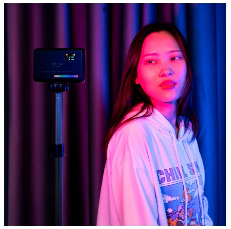 Компактный и легкий осветитель Ulanzi VL120 размером всего 6,6 х 10,6 х 1,5 см и весом 120 г легко поместится в кармане и дамской сумочке. Оснащен 120 светодиодными лампами с индексом цветопередачи 95. Режим RGB регулируется от 0 до 360° насыщенности цвета. Яркость прибора плавно регулируется от 0 до 100%, а цветовая температура меняется от 2500K до 9000K. Осветитель имеет 20 световых эффектов, такие как: полицейская машина, машина скорой помощи, пожарная машина, молния, фейерверк, телевизор, свеча, неисправная лампочка, пульсирующий свет, стробоскоп, RGB Стробоскоп, папарацци, аварийная ситуация, H/L луч, красная/зеленая/синяя вспышка, HSI медленная/быстрая. Нижнее крепление с отверстием для винта 1/4” позволяет легко установить этот свет на камеру, штатив или стойку. В комплекте к свету идет крепление с холодным башмаком, позволяющий установить свет на камеру. Для создания более мягкого света в комплекте предусмотрен силиконовый белый диффузор. Встроенная литиевая батарея емкостью 3100 мАч обеспечивает 1,5-15 часов работы осветителя после полной зарядки, а заряжать его можно через порт зарядки Type-C. Ulanzi VL120 отлично подходит для ведения видеоблогов, освещения на вечеринках, съемки селфи, портретов, предметной фотосъемки и многого другого.