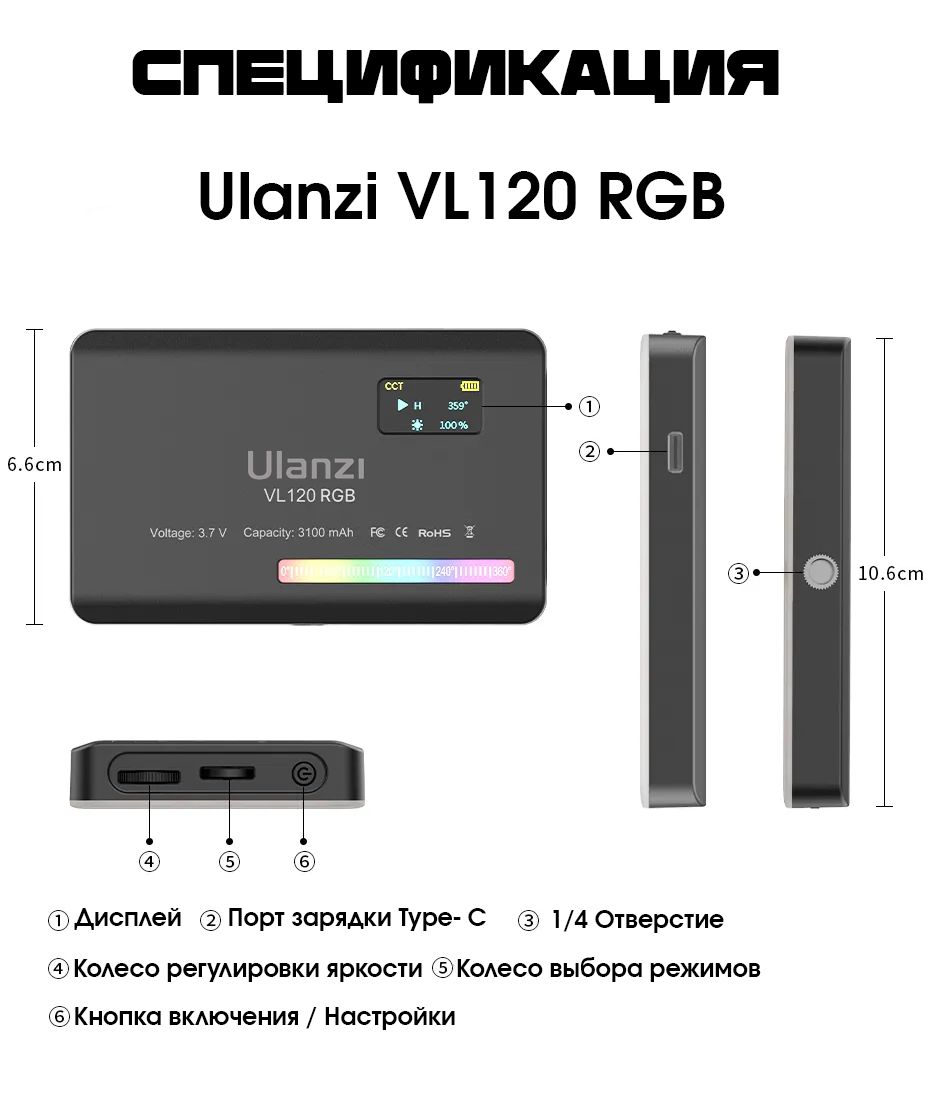 На сегодняшний день товар «Осветитель Ulanzi VIJIM VL120 Mini Pocket LED, 8 Вт, 3200-6500К, светодиодный, черный» можно купить с кешбеком в 1 магазине: Яндекс.Маркет