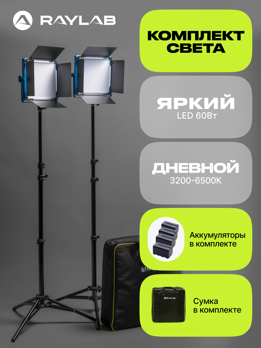 Raylab RL-30 Adv — базовый комплект постоянного света для портретной, рекламной, предметной и других видов съемки в помещении. Две LED панели обеспечивают мягкий световой поток с высоким индексом цветопередачи — CR>95. Цвета в кадре выглядят максимально реалистично. Блок управления с дисплеем позволяет плавно регулировать цветовую температуру (3200–6500 К) и яркость (0–100%) освещения. В комплект входят две стойки, два осветителя и сумка.