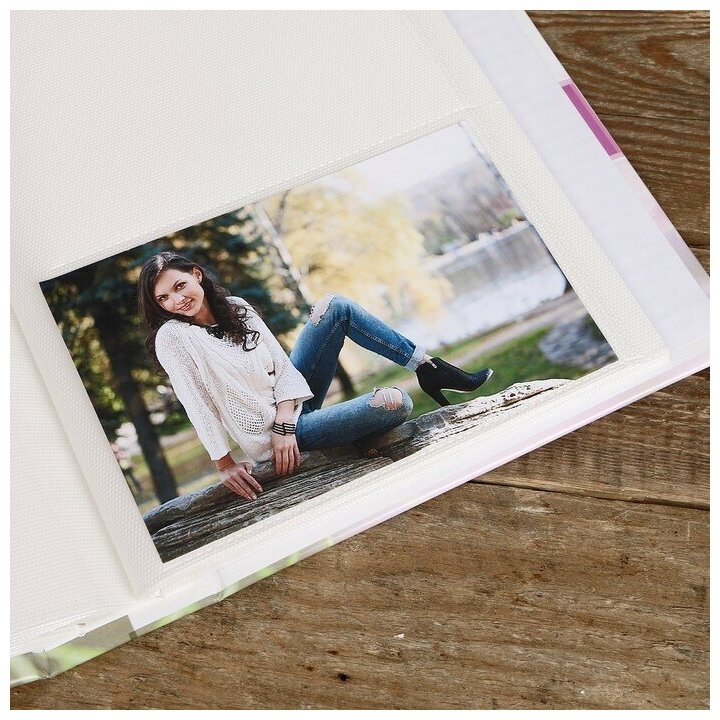 Альбом с кармашками для хранения 200 фотографий 10х15 см. Дизайн хорошо подходит для девушек, а также для семейных фото. В прозрачных кармашках фотографии надежно защищены от грязи, пыли, отпечатков пальцев. Со временем их можно легко поменять местами. Обложка альбома твердая, из плотного ламинированного картона, белые пластиковые страницы закреплены с помощью термосварки.