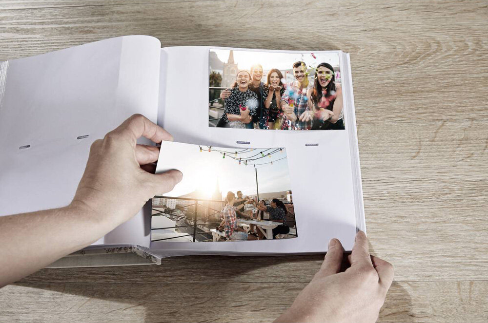 Фотоальбом для 200 фотографий формата 10х15. Твердая обложка из плотного текстурированного картона, белые бумажные страницы с пластиковыми кармашками и местами для подписи скреплены книжным переплетом. На обложке вырезано окошко, в которое можно разместить свою фотографию или рисунок. Есть кармашек для CD / DVD диска или нарезанной фотопленки.