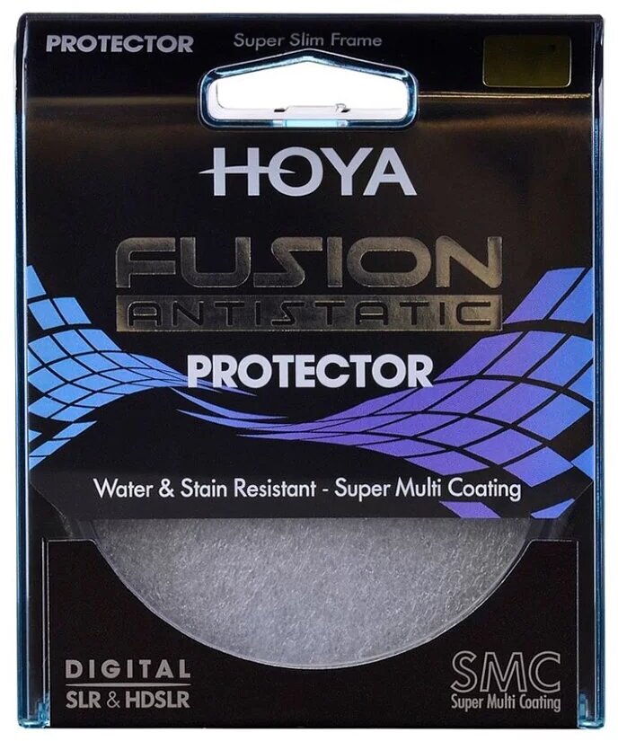 Светофильтры Hoya Fusion Antistatic - новинка 2015 года. Инновационное антистатическое покрытие действует как силовое поле, не давая пыли оседать на поверхности фильтра. Кроме того, жесткий антистатический слой покрытия обладает водоотталкивающими свойствами, поэтому фильтр дольше остается чистым и легче отчищается, а капли дождя сбегают по фильтру, не задерживаясь. Наконец, покрытие имеет повышенную стойкость к появлению царапин и потертостей. Тонкая оправа позволяет устанавливать такие фильтры на сверхширокоугольные объективы, не опасаясь усиления виньетирования.Защитные фильтры используются с единственной целью - защиты передней линзы объектива от загрязнения и царапин. Оптически они полностью нейтральны и не вносят никаких искажений в цветопередачу, за исключением минимальной потери света (1-2%).Фильтры Hoya Fusion Antistatic выполняются из оптического стекла профессионального уровня. Просветляющее покрытие: 9-слойное. Отлично справляется с бликами и ореолами при боковом освещении. Оправа выполнена из алюминия.