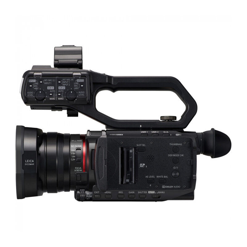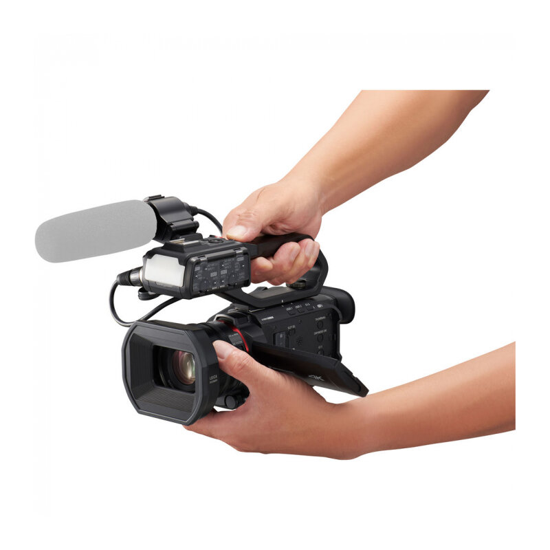 Если вы снимаете за кулисами (BTS) в формате HD и хотели бы добавить 4K к своему репертуару, видеокамера Panasonic UHD 4K Pro - решение ваших потребностей. Компактный и легкий для режиссера или BTS на съемочной площадке, X2000 снимает и записывает UHD 4K с частотой кадров, совместимой с трансляцией в широкоформатном режиме.X2000 оснащен 1 / 2,5 " 8,29-мегапиксельным сенсором, который идеален для съёмки видео с разрешением 4K, процессором Venus для масштабирования изображения 4K для доставки Full HD, а также выходами 3G-SDI и HDMI. Звук записывается до 24 -бит PCM через встроенный микрофон.Встроенный объектив Leica Dicomar имеет 24-кратный зум с самым широким углом наклона 25 мм и использует функцию цифрового iZoom для увеличения до 48-кратного. Функция АФ с распознаванием лиц позволяет вам отслеживать лица и автоматически настраивает фокусировку на объекте. Также, он оснащен кольцами ручного управления, диском управления и 5-осевой оптической стабилизацией изображения для обеспечения устойчивости снимков. 3,5-дюймовый складной ЖК-дисплей оснащен сенсорным экраном высокого разрешения. Камера записывает кодеки .mp4, .mov и AVCHD и поддерживает сжатие HEVC. Камера оснащена двумя гнездами для карт SD, что позволяет использовать реле и одновременную запись.Камера поддерживает потоковую передачу по Wi-Fi 2,4 ГГц через потоки RTP / RTSP / RTMP / RTMPS.В комплект входит съемная верхняя ручка VW-HU1, которая имеет два 3-контактных входа XLR, которые можно переключать между микрофонным, линейным и фантомным питанием + 48 В, и имеет отдельные ручки регулировки громкости. Встроенный светодиодный индикатор на передней панели устройства позволяет освещать объект мягким рассеянным светом, а также имеет функцию затемнения. Держатель микрофона прикреплен к стандартному гнезду сверху на корпусе камеры, а ручка также, как и на камере, оснащена креплением "холодный башмак" и крепежной резьбой для дополнительных аксессуаров. Обратите внимание: меню камеры не русифицировано.