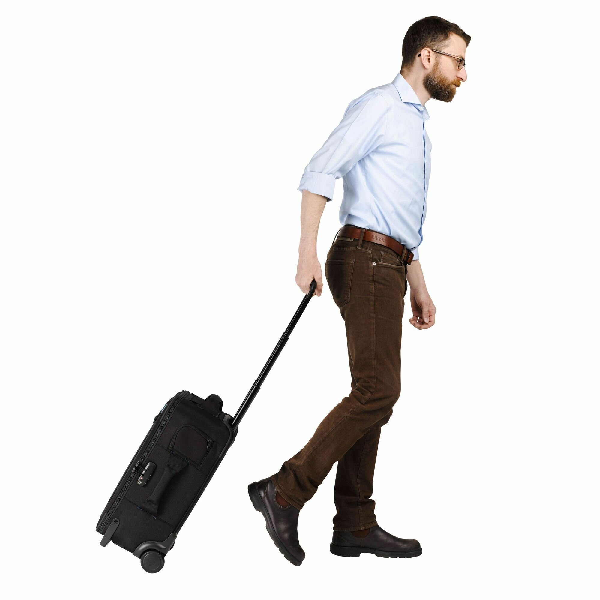 Телескопическая выдвижная ручка обеспечивает удобство перемещения по длинным залам аэропортов, отелей или парковок.