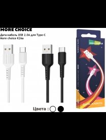 Кабель More Choice K26a USB 2.0A для Type-C 1м (Black)