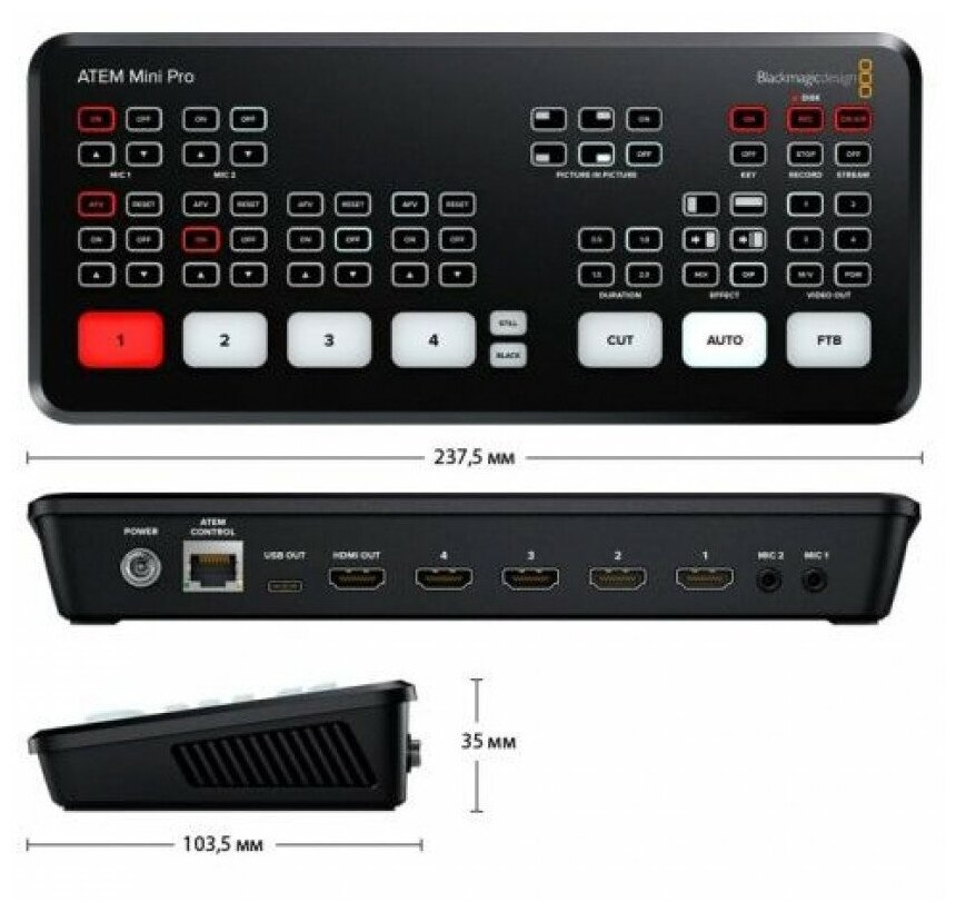 Blackmagic - это видеомикшер, предназначенный для прямой трансляции с нескольких камер. Он предлагает четырехканальный переключатель со встроенной панелью управления для игровых консолей, компьютеров или HD-камер. оснащен четырьмя входами HDMI на задней панели, которые принимают видео 1080p/60 и 1080i/60. К выходу HDMI можно подключить проектор или внешний монитор. Другие соединения включают выход USB-C и RJ-45.Особенности Black Magic Design включают поддержку видеорежима 720p, 1080i и 1080p, а также воспроизведение мультимедийных файлов. Максимальное разрешение на выходе составляет 1920х1080, а частота при этом может достигать 60 кадров в секунду. имеет встроенный интерфейс Ethernet, таймер записи и функцию картинка в картинке. Он также поддерживает автономную работу и подключение через USB.Видеомикшер выполнен в черном цвете и имеет размеры 23,8 х 10,4 х 3,6 см и вес 550 г. Он совместим с операционными системами Windows 10 и MacOS 10.14, 10.15 или новее.В целом, Blackmagic - это надежный и функциональный видеомикшер, который станет отличным выбором для тех, кто занимается прямой трансляцией видео.