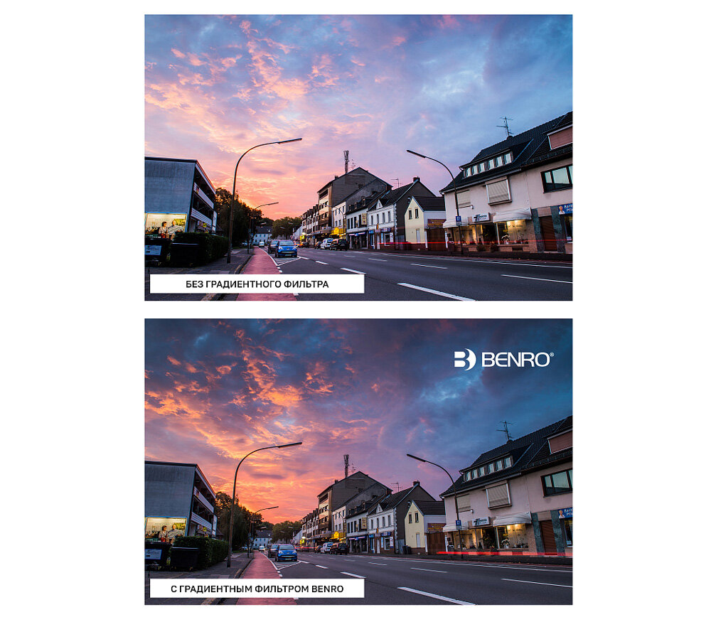 Градиентный фильтр нейтральной плотности с резким переходом (Hard edge) между затемненным и прозрачным участком. Как правило, применяется в пейзажной фотографии: для изображений, на которых через весь кадр проходит линия горизонта, градиентный фильтр позволяет избежать передержки неба или недоэкспонирования земли. Плотность 0.9: 3 ступени экспозиции.Фильтры Benro серии Master изготавливаются из минерального оптического стекла марки B270 производства Schott AG, Германия. Это позволяет сохранить максимальную резкость вашего объектива. Стекло покрывается 10 слоями светопоглощающей пленки (по 5 с каждой стороны), 14 слоями просветляющего покрытия ULCA (Ultra Low Chromatic Aberration, по 7 с каждой стороны) и в завершение – слоем твердого защитного покрытия с водоотталкивающими свойствами NANO WMC. ND покрытие Benro равномерно поглощает не только видимый свет, но и ближнюю часть инфракрасного диапазона, чтобы предотвратить цветовой сдвиг в сторону красного.Закаленное стекло (H - hardened) – более устойчивое к случайным ударам.Градиентные фильтры нейтральной плотности не влияют на цветовой баланс изображения, могут использоваться сами по себе или в сочетании с фильтрами других типов.