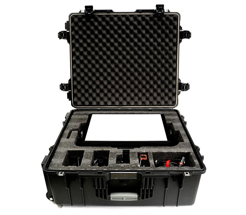 | Комплектация | осветитель, блок управления, 2 кабеля XLR 5-pin (для блока управления) 60 см и 300 см, кабель питания 6 м, крепление для блока управления, кейс на колесах |