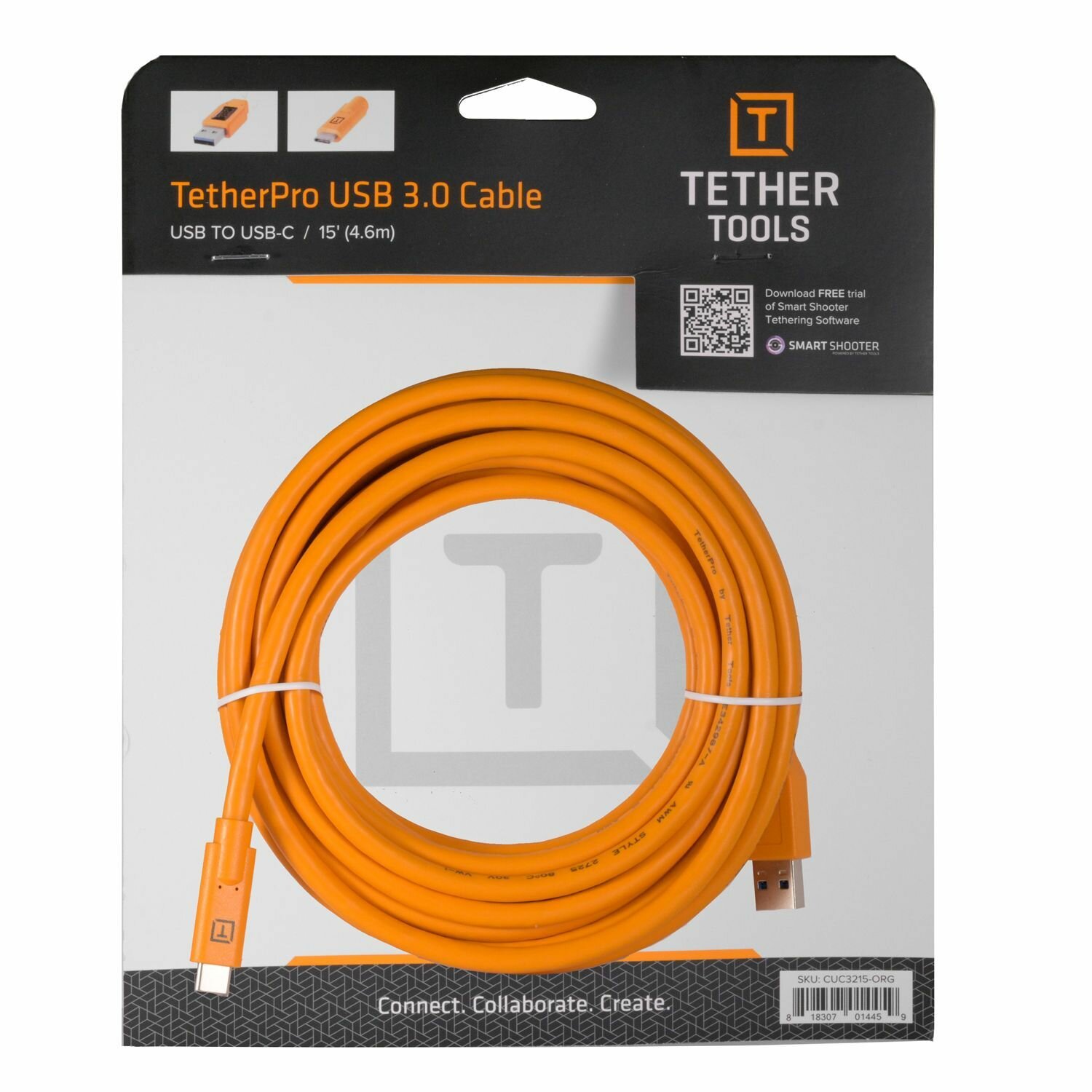 Доступный в 15 ’ / 4,6 м кабель предназначен для большинства сценариев подключения. Однако, если вам нужно удлинить кабель, используйте активный удлинитель TetherPro USB 3.0.