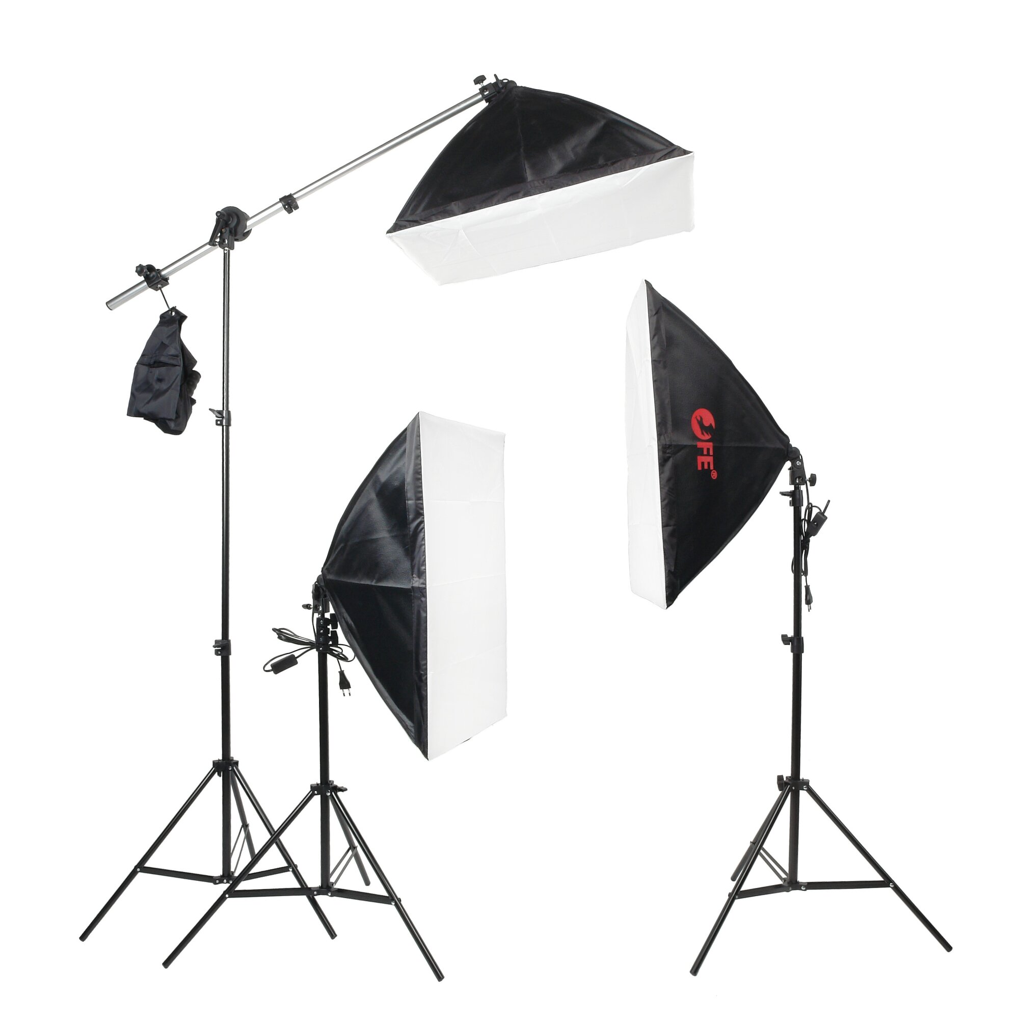 Falcon Eyes KeyLight 325LED SB5070 KIT – это комплект постоянного света для фото- или видеосъемки, в который входят три осветителя LH-E27 со светодиодными лампами типа Corn и несъемными складными софтбоксами, три стойки для установки осветителей, перекладина-журавль, муфта, мешок для песка и сумка для хранения.