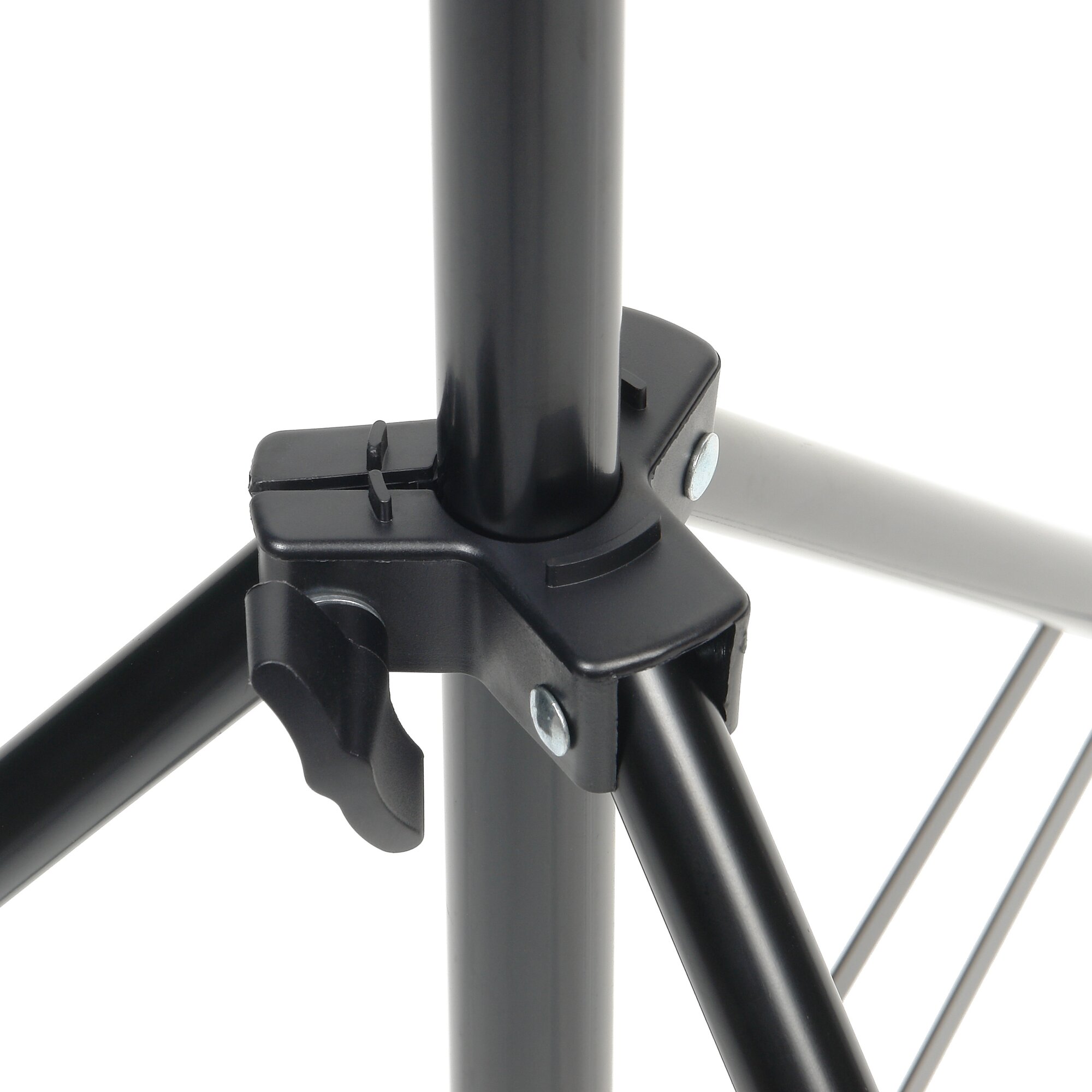 Осветитель с софтбоксом устанавливается на осветительную стойку (на конце которой закреплен несъемный шпигот 5/8”) и фиксируется винтом. Положение осветителя можно точно регулировать, изменяя высоту стойки от 85 см до 188 см. Высота стойки меняется выдвижением алюминиевых трубок телескопических секций диаметром 22/19/16 мм с винтовыми зажимами.