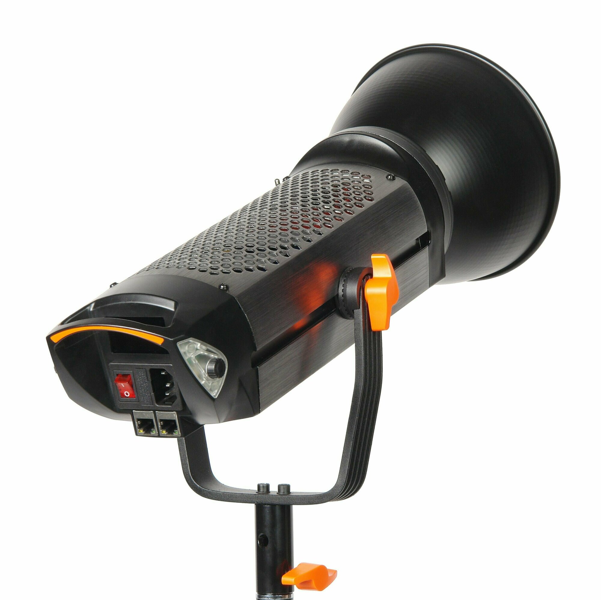 Вентилятор, встроенный в прочный металлический корпус осветителя, служит для защиты от перегрева. Благодаря тому, что вентилятор практически бесшумно охлаждает устройство, осветитель можно использовать во время первичной записи звука при длительной видеосъемке или на сцене.
