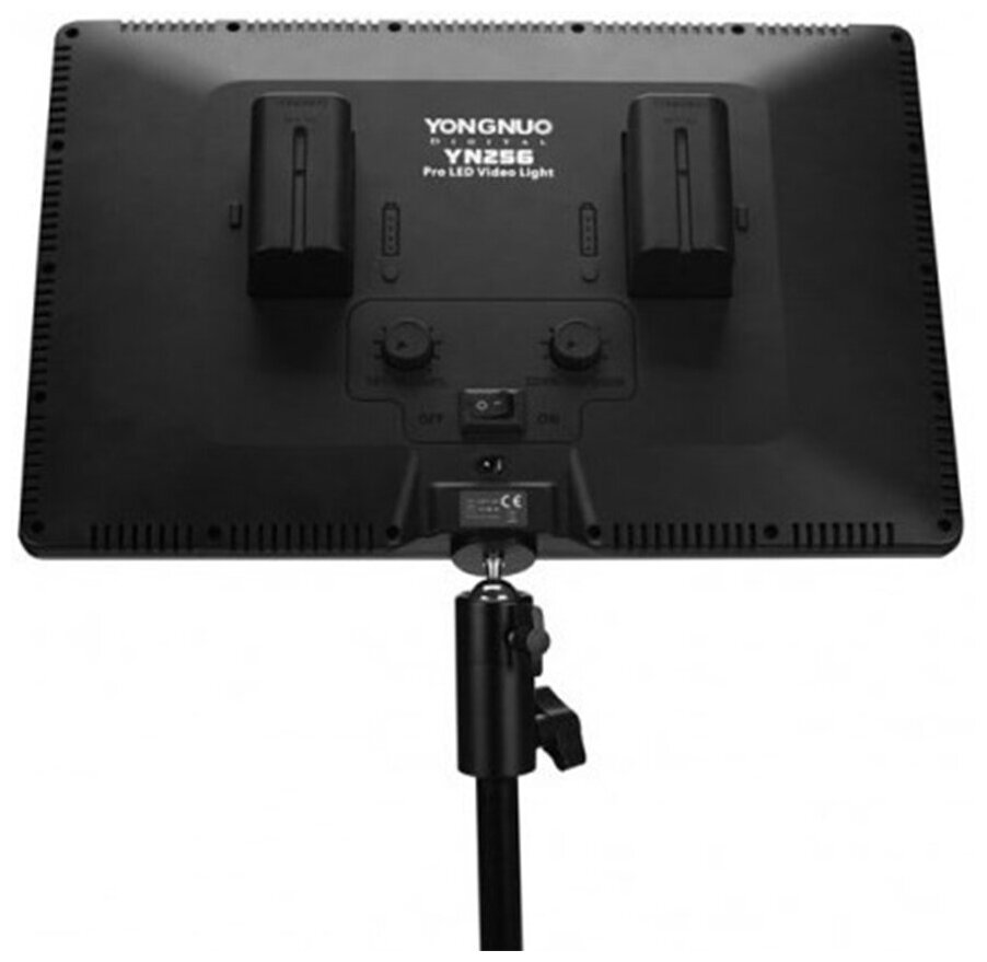 Яркий профессиональный свет от YongNuo имеет регулируемую цветовую температуру от 3200 до 5500 К. 256 светодиодов обеспечивают яркий световой поток с мощностью 25 Вт, а благодаря новой фирменной технологии модель полностью избавлена от мерцания. Панель может питаться как от сетевого адаптера, так и от двух аккумуляторов типа NP-F В комплект добавлена шаровая голова с зажимом, что позволяет выбрать практически любой угол расположения YN-256