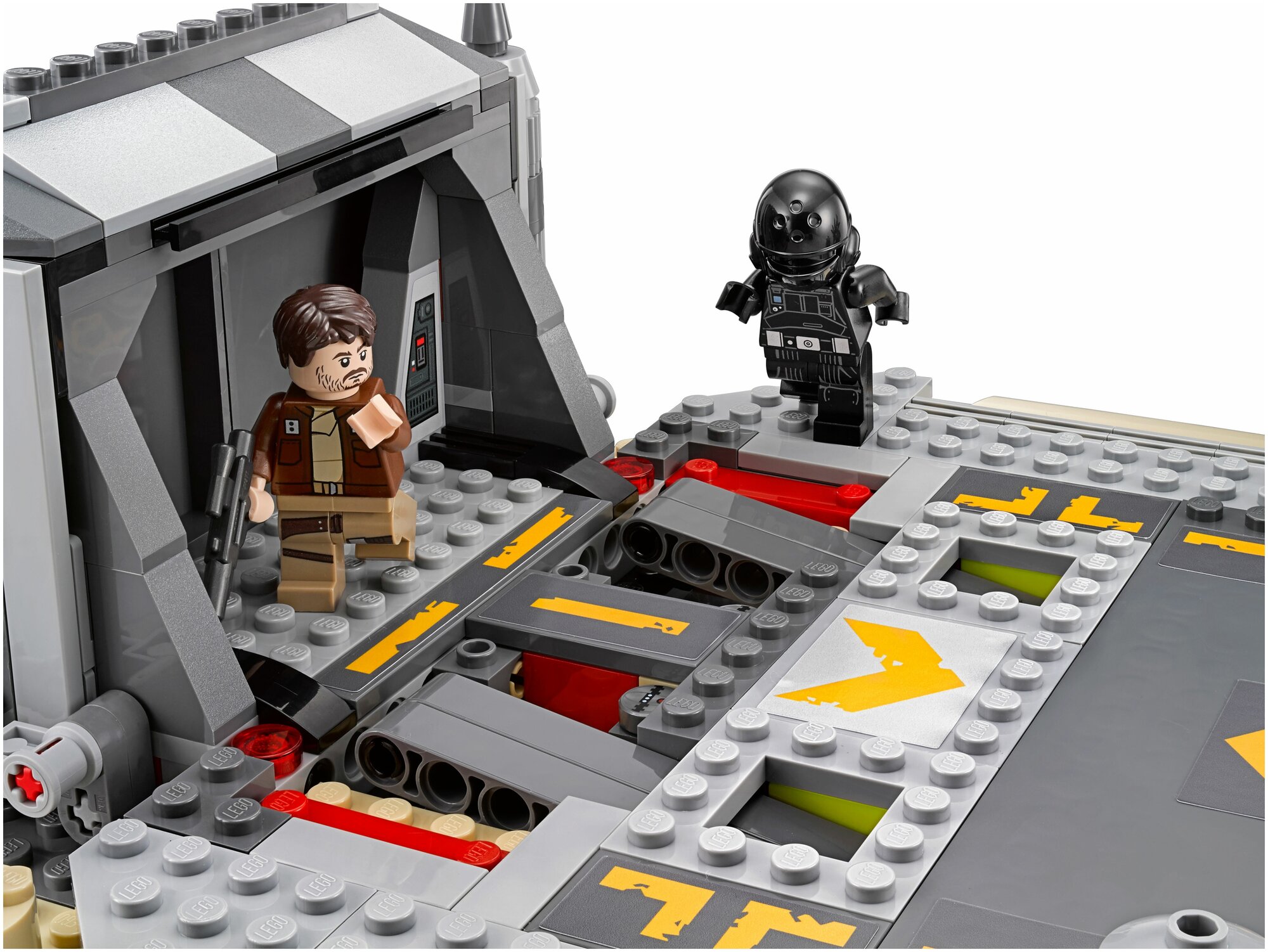 LEGO Star Wars Битва на Скарифе - желанный подарок для юного поклонника Вселенной «Звездных войн». На планете Скариф в недрах бункера спрятаны драгоценные и секретные чертежи «Звезды смерти», но они тщательно охраняются. Предстоит разработать беспроигрышный план по их похищению, ведь на пути будут встречаться взрывающиеся панели на полу и летящие пули.