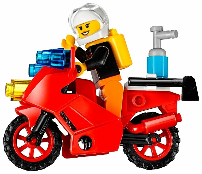 LEGO Juniors Чемоданчик Пожарная команда - набор, который сможет заинтересовать подрастающего защитника. Скоро ему предстоит выбрать, какой профессиональной деятельности он посвятит свою жизнь. Вполне возможно, что оригинальный чемоданчик Lego станет идейным вдохновителем ребенка. За прочными пластмассовыми стенками его ждет множество деталей, которые складываются между собой и составляют настоящую пожарную команду. Отважные спасатели примчались на вызов о возгорании, помоги им потушить огонь при помощи специальных шлангов! Моделируя игровые сценки, маленький исследователь узнает о важности профессии пожарного и о том, какие трудности бывают у него на пути.