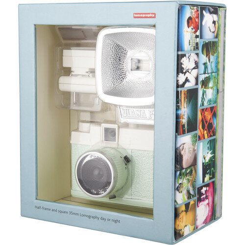 Diana Mini – шкальный аналоговый Lo-Fi фотоаппарат под 35-мм пленку, одна из классических камер в Ломографии. Очень «мягкий» пластиковый объектив с низкой светосилой (F8), виньетированием и другими аберрациями – именно то, что нужно ломографу. Камера снимает в двух форматах: квадратный 24х24 мм, или узкий 24х17 мм (половинка 35-мм кадра). В первом случае 1 стандартной пленки хватает на 36 кадров, во втором – на 72. Есть большая вспышка, режимы мультиэкспозиции и «бесконечной панорамы», длинной выдержки от руки (Bulb). Можно подсоединить стандартный механический спусковой тросик, есть штативное крепление (которое располагается на объективе).