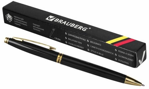 ручка шариковая Brauberg "De luxe Black" корпус черный золот. детали синяя 141411