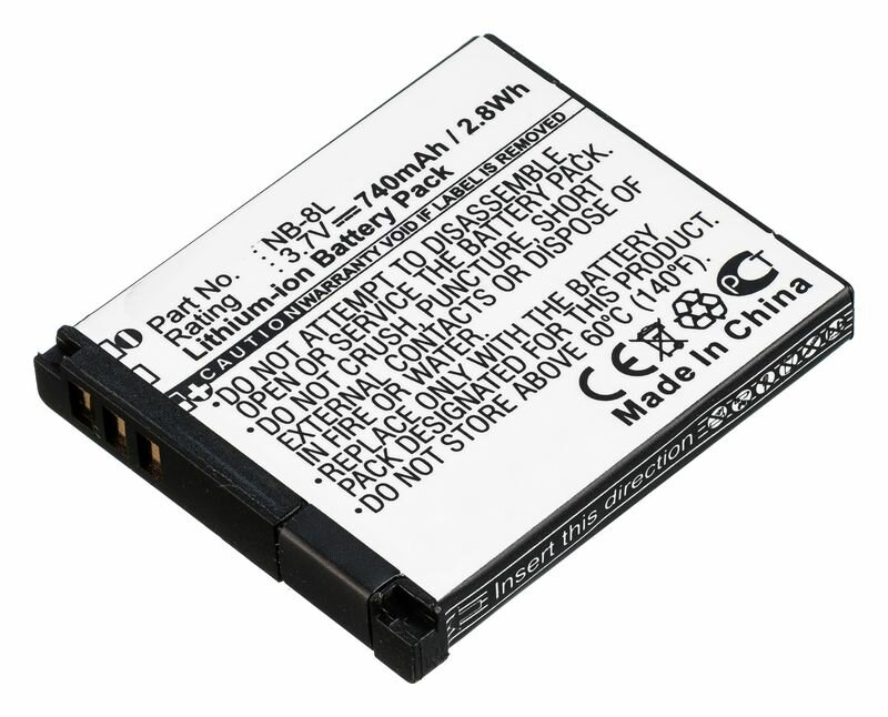 Литий-ионный аккумулятор Pitatel SEB-PV008 может использоваться в компактных фотоаппаратах Canon вместо оригинального аккумулятора . Емкость: 740 мАч, напряжение: 3.6 В. Сделано в Китае.