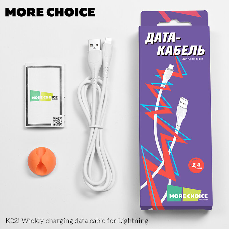 Кабель More Choice K22i USB 2.4A для Apple 8-pin 1м (White)