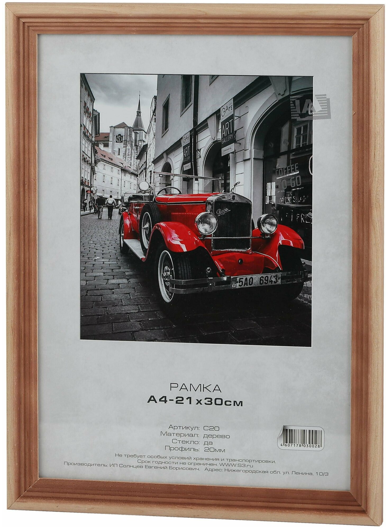 Рамка из натурального дерева (сосна) со стеклом. Есть ушко для крепления на стену, ножки нет. Ширина багета: 20 мм. Сделано в России.