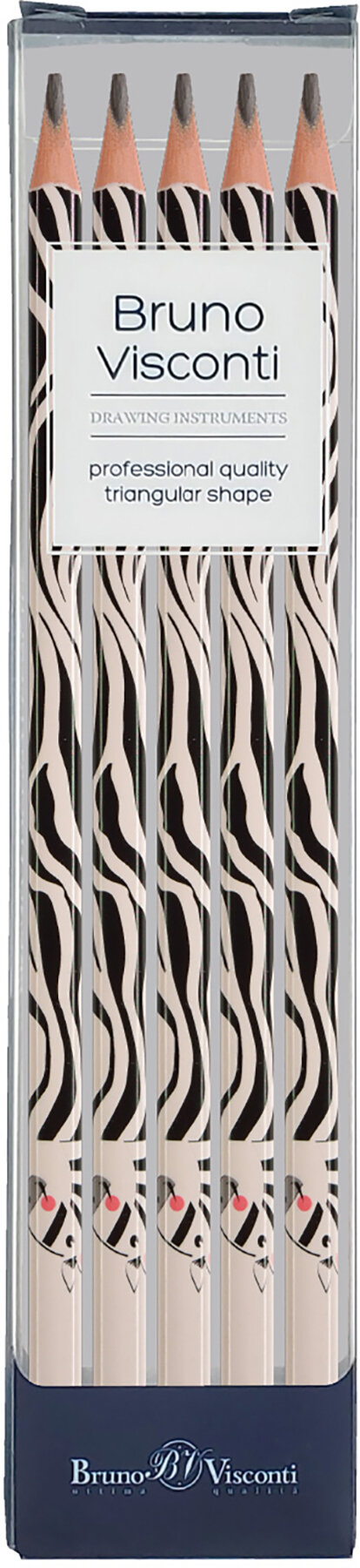 Набор из 5каранд. ч/гр "Зебра" НВ21-0050/01-5 Bruno Visconti