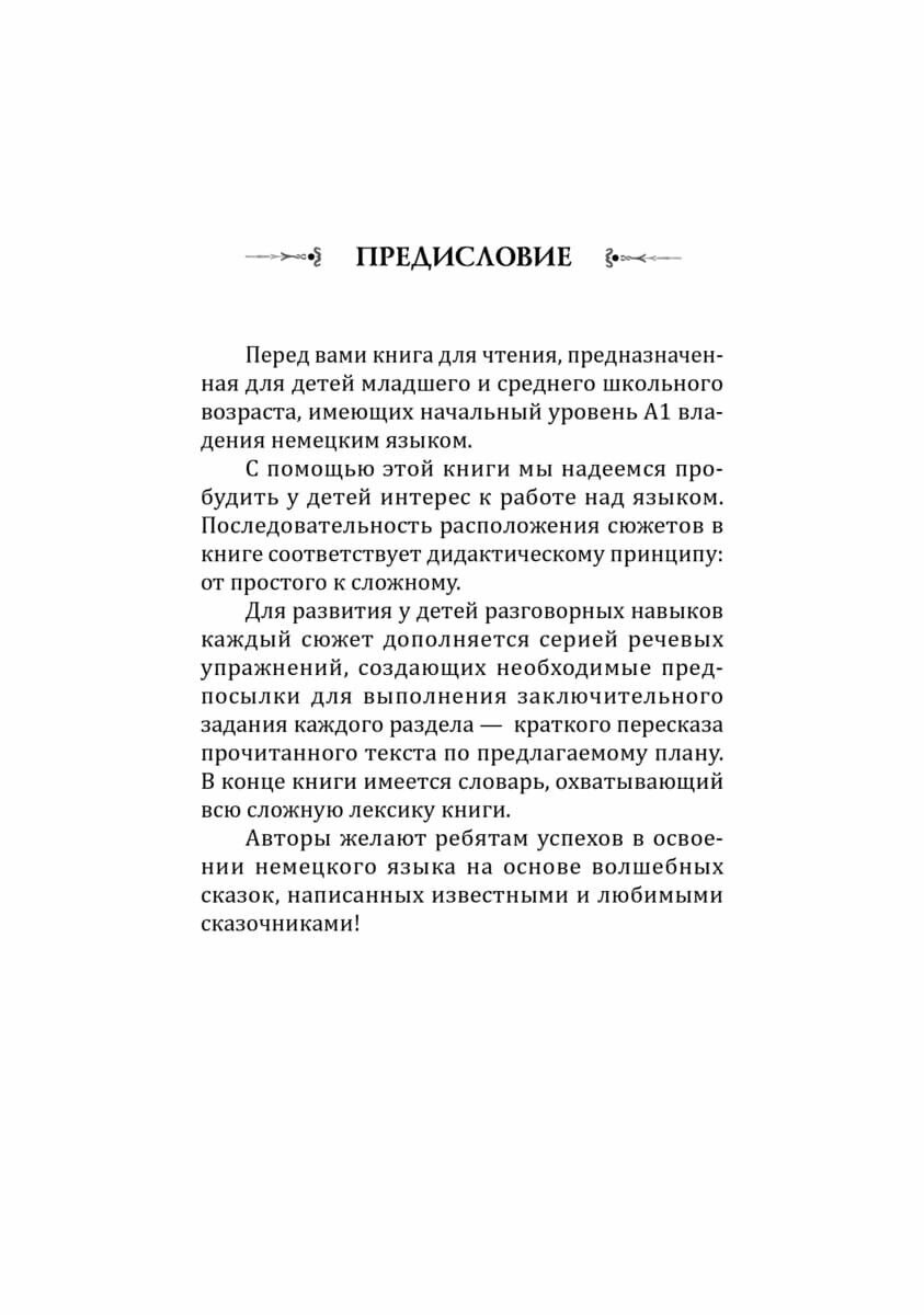 Любимые сказки Ганса Христиана Андерсена и братьев Гримм на немецком языке адаптированы для уровня А1 - для детей младшего и среднего школьного возраста. Тексты расположены от простого к сложному. Каждую сказку дополняют упражнения, лексический комментарий и словарь. Они помогут усвоить новую лексику, развить разговорные навыки и пробудить интерес к работе над языком.