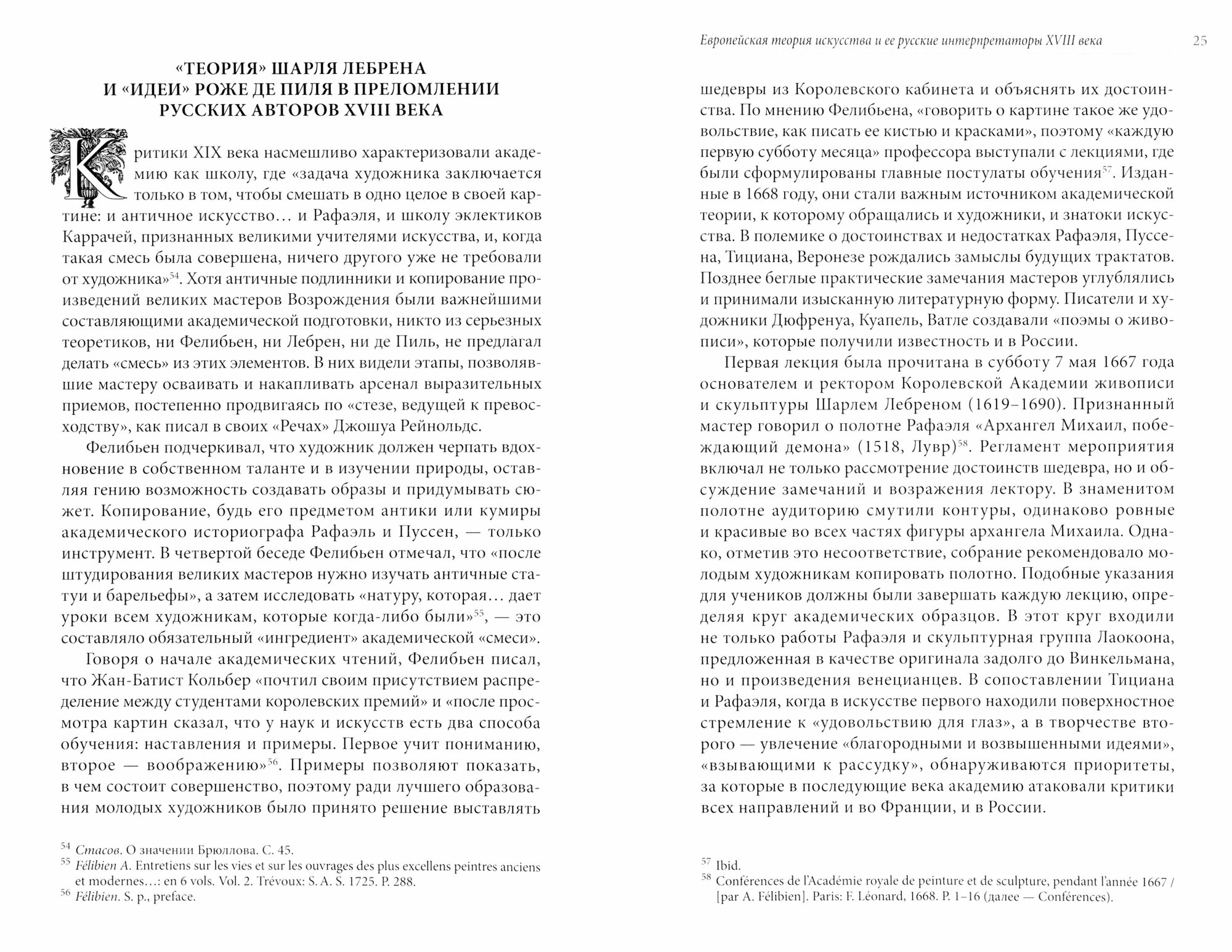 Фундаментальная работа, посвященная европейским концепциям искусства в русской культуре XVIII века, позволяет проследить судьбы многих важнейших художественных идей на русской почве. В России, только начинающей процесс поиска приоритетов в сфере искусства, одновременно узнавали Андре Фелибьена и Шарля Антуана Куапеля, Иоганна Винкельмана и Роже де Пиля. Для отечественной культуры этого времени характерно восторженное отношение к любым текстам об искусстве. Особое место в книге уделено образцам для копирования и интерпретации - важному элементу в творчестве художника, состоящему в прямой зависимости от его просвещенности в теоретической сфере. Выявление таких источников - существенный вклад автора в отечественное искусствознание.