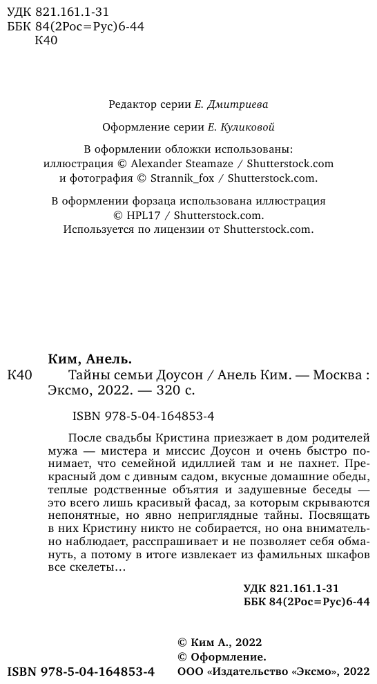 Книга: Тайны семьи Доусон (Ким Анель); ООО "Издательство "Эксмо", 2022