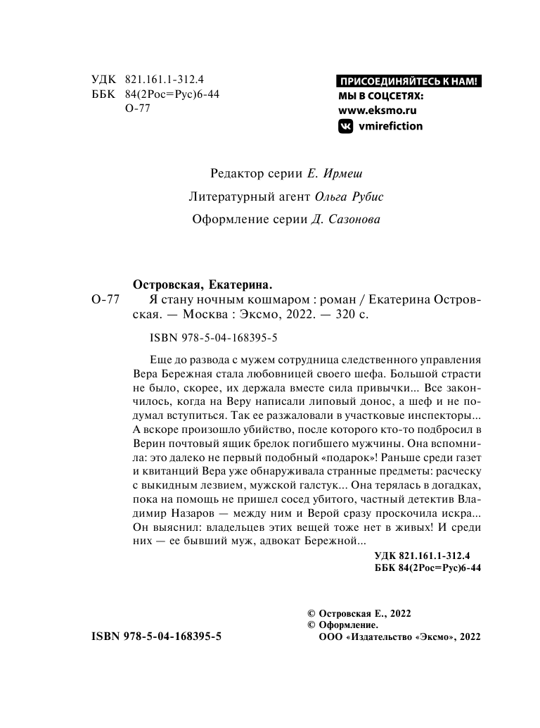 Книга: Я стану ночным кошмаром (Островская Екатерина Николаевна); ООО "Издательство "Эксмо", 2022