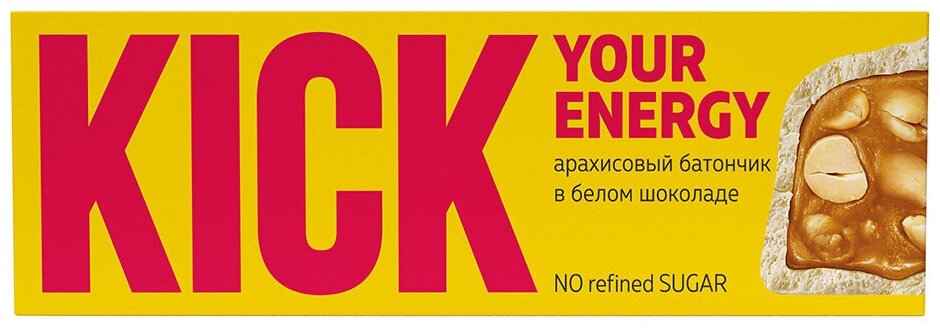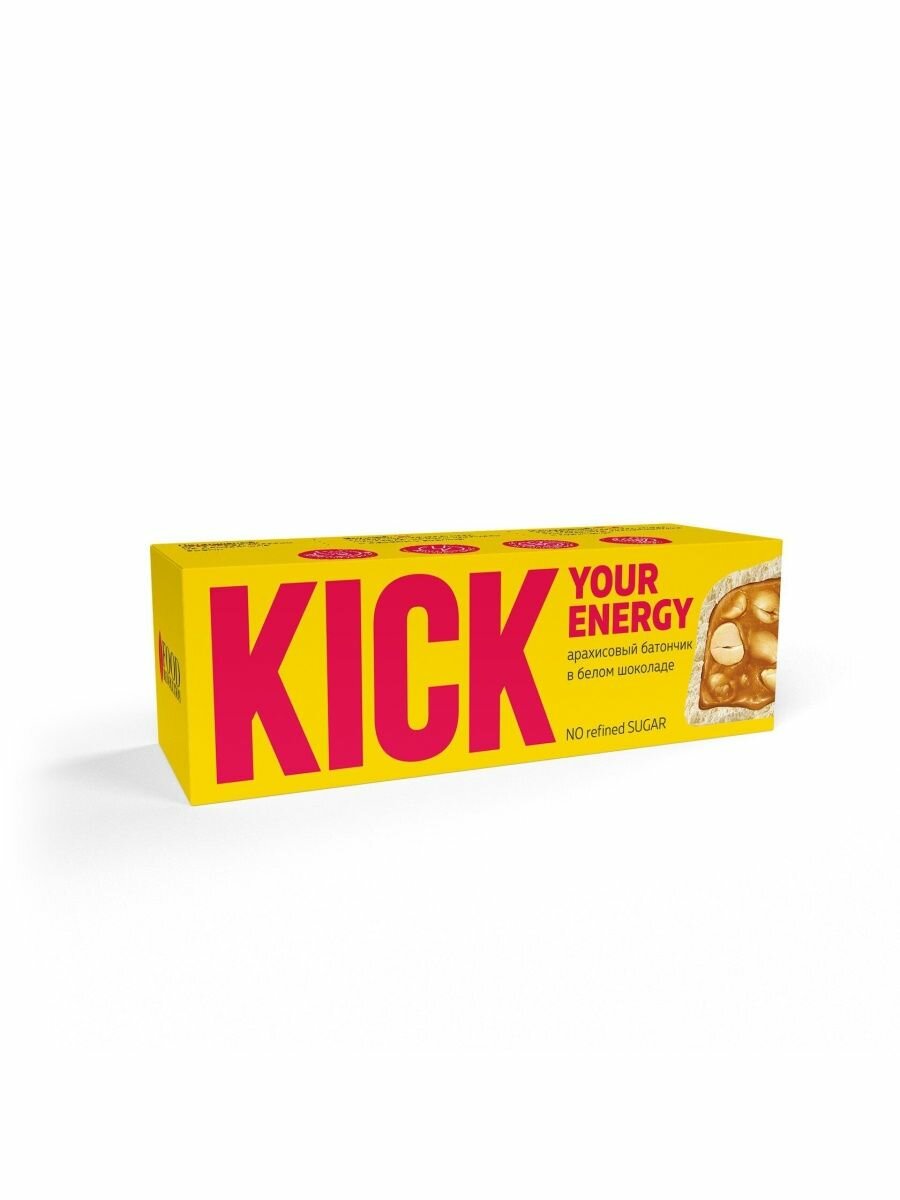 Батончик Kick your energy арахисовый в белом шоколаде 45г