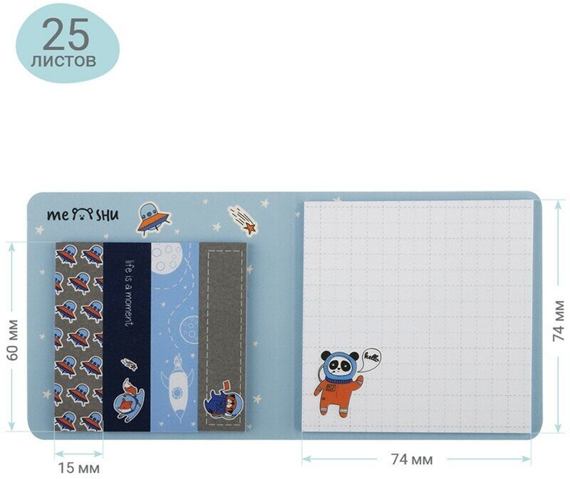 Набор закладок Meshu Space adventure Флажки-закладки 74*74мм + Самоклеящиеся блоки 60*15мм 25л