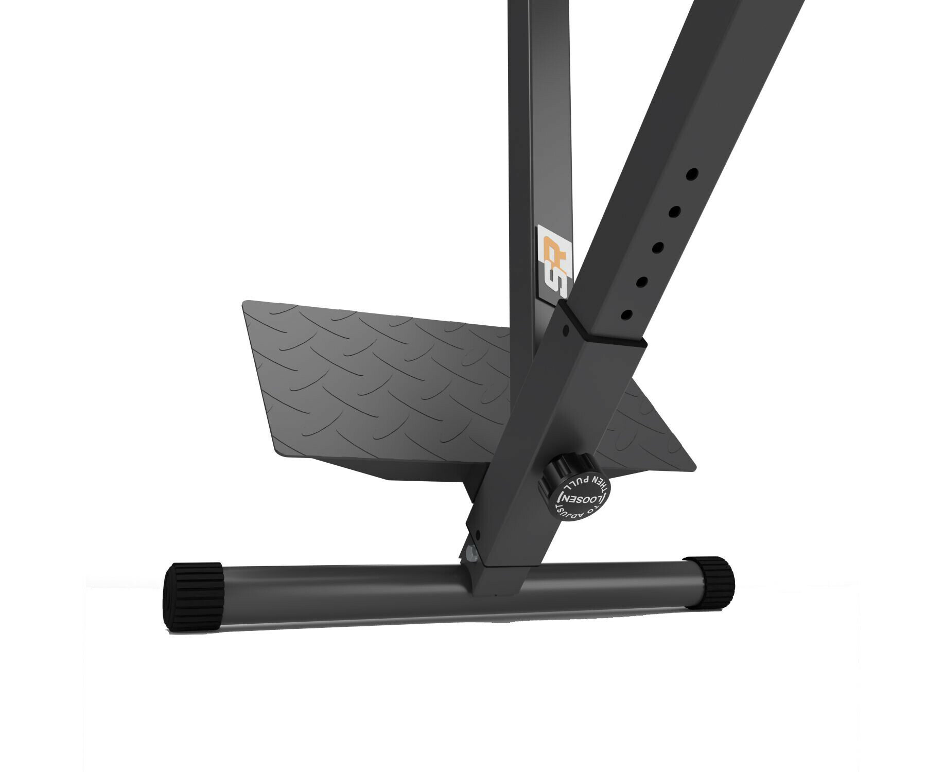 Высота опорной платформы регулируется по высоте в 10-ти положениях, благодаря чему подойдёт пользователям любого роста. Платформа толщиной 3,5 мм имеет рифлёное покрытие, предотвращающее скольжение во время выполнения упражнений, и выдерживает вес пользователя до 150 кг.