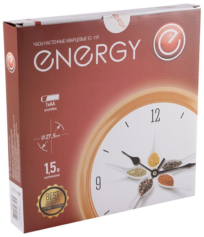 Настенные часы Energy модель ЕС-159 кварцевые 102120 предназначены для отображения времени и украшения интерьера. Простая конструкция позволяет быстро закрепить изделие на любой стене, что экономит время. Крупные цифры позволяют разглядеть время на расстоянии, за счет чего подходят для людей с близорукостью. Часы имеют тихий ход, поэтому отличаются почти бесшумной работой, благодаря чему не разбудят ночью.