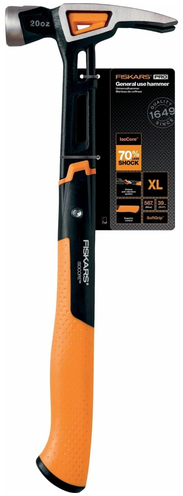 Молоток "Fiskars" оснащен уникальной системой поглощения удара и вибрации: в рукоятке находятся изолирующая втулка, которая прерывает вибрацию и стальной стержень, который увеличивает прочность рукояти и снижает колебания. При ударе отдача на кисть руки и плечо снижается на 70%. Инструмент идеально сбалансирован. Ручка с нескользящим амортизационным покрытием SoftGrip. Эргономичная форма рукояти обеспечивает полный контроль при работе.