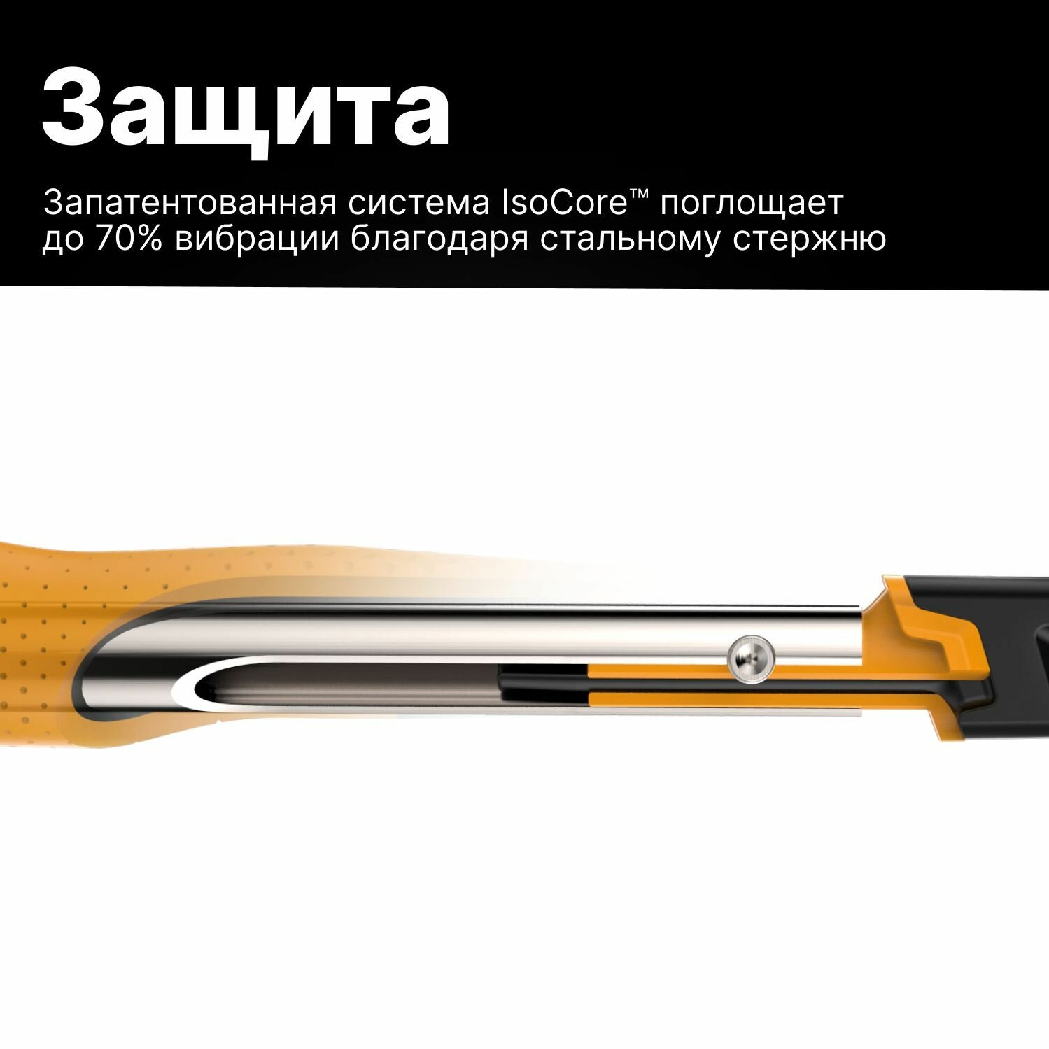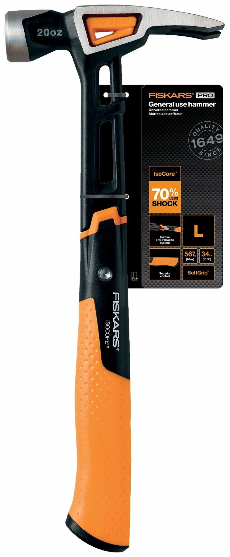 Молоток "Fiskars" оснащен уникальной системой поглощения удара и вибрации: в рукоятке находятся изолирующая втулка, которая прерывает вибрацию и стальной стержень, который увеличивает прочность рукояти и снижает колебания. При ударе отдача на кисть руки и плечо снижается на 70%. Инструмент идеально сбалансирован. Ручка с нескользящим амортизационным покрытием SoftGrip. Эргономичная форма рукояти обеспечивает полный контроль при работе.