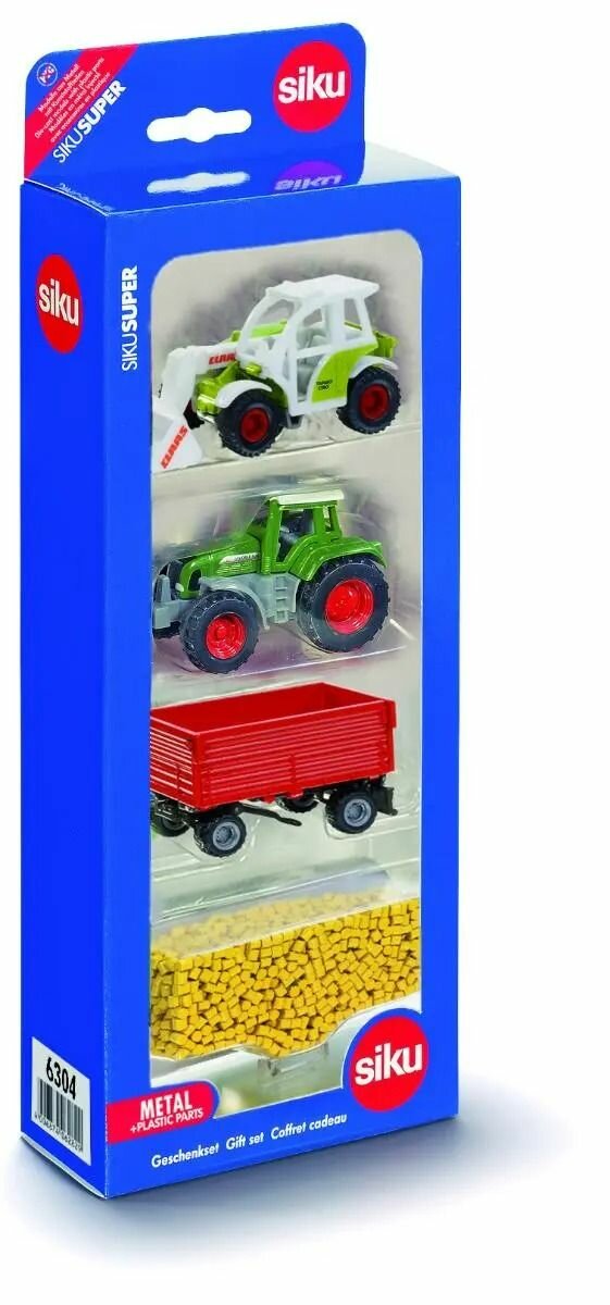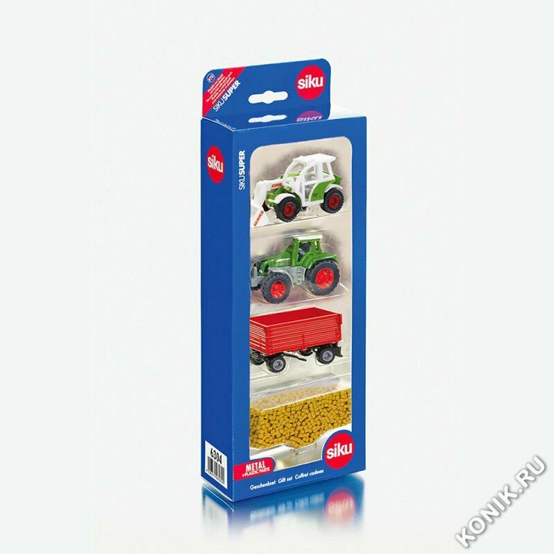 SIKU Игровой набор сельскохозяйственной техники с прицепом и зерном - комплект, который сможет заинтересовать маленького исследователя. Проникнуться романтикой сельской жизни ему помогут два трактора и прицеп. В легкой игровой форме малыш узнает о назначении специализированной техники, а вращающиеся колеса добавят еще больше реалистичности в сюжеты игровых сценок.