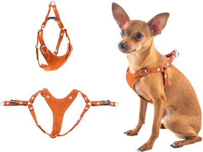 Darell Дарелл шлейка для собак быстросъемная обхват шеи 19-27см обхват груди 24-32см замша оранжевая (19-27/24-32 см)