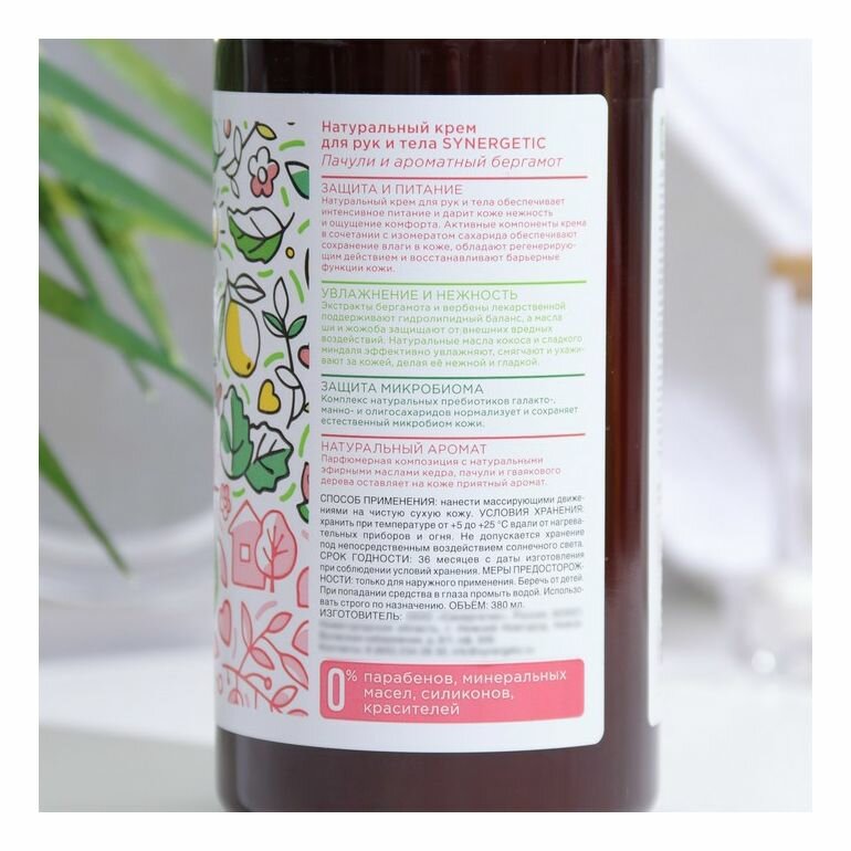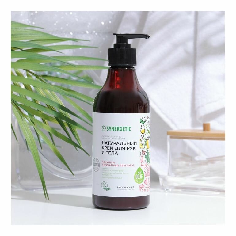 Натуральный крем для рук и тела SYNERGETIC «Пачули и ароматный бергамот» 380 мл
