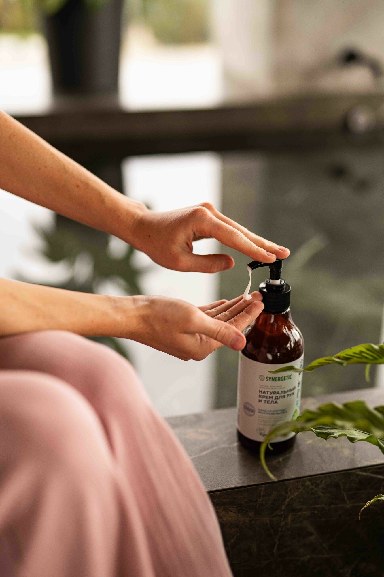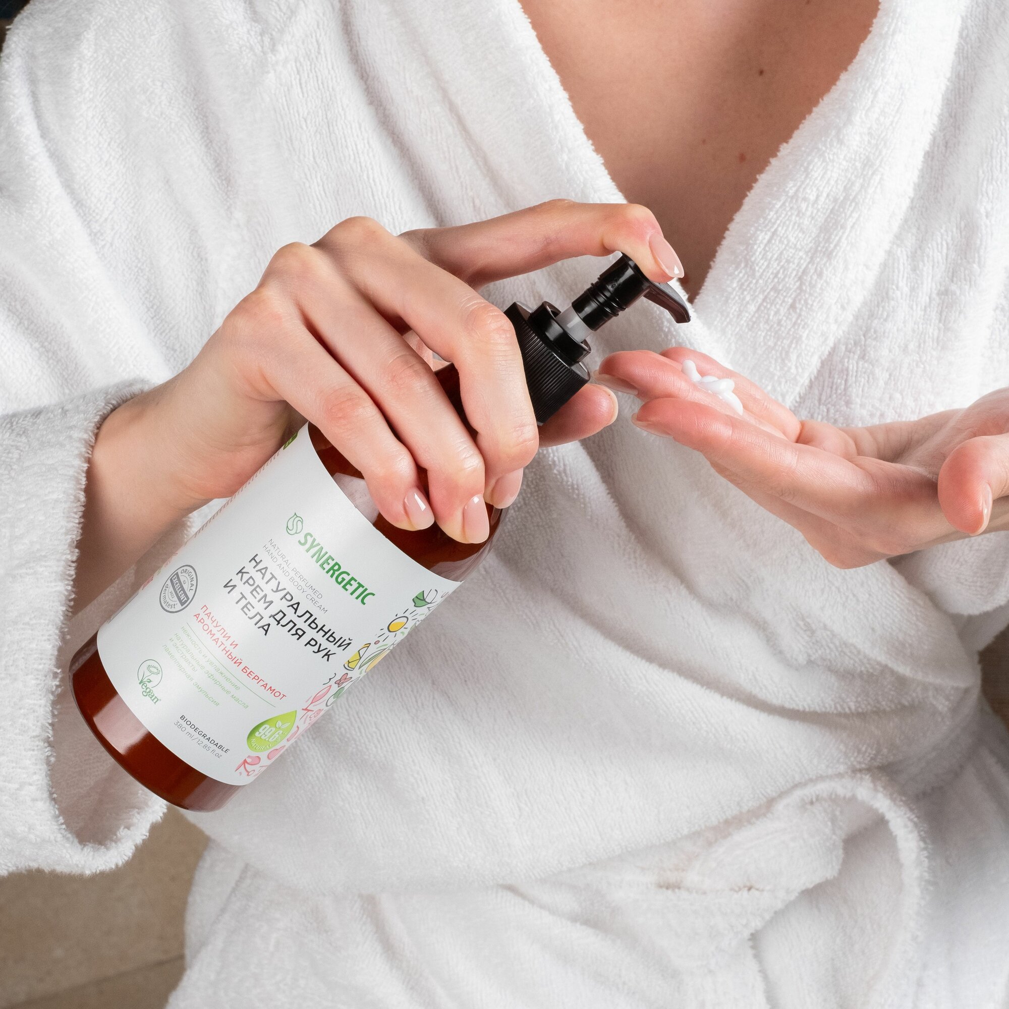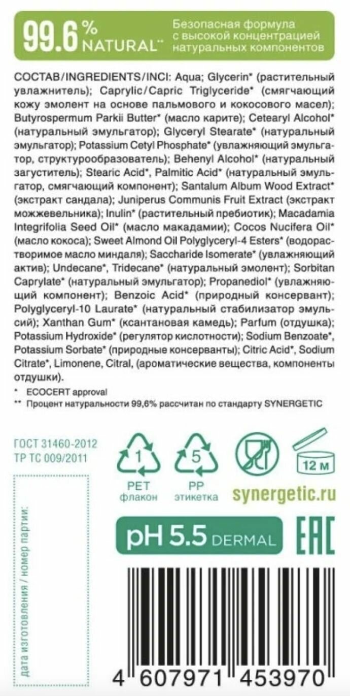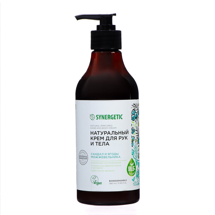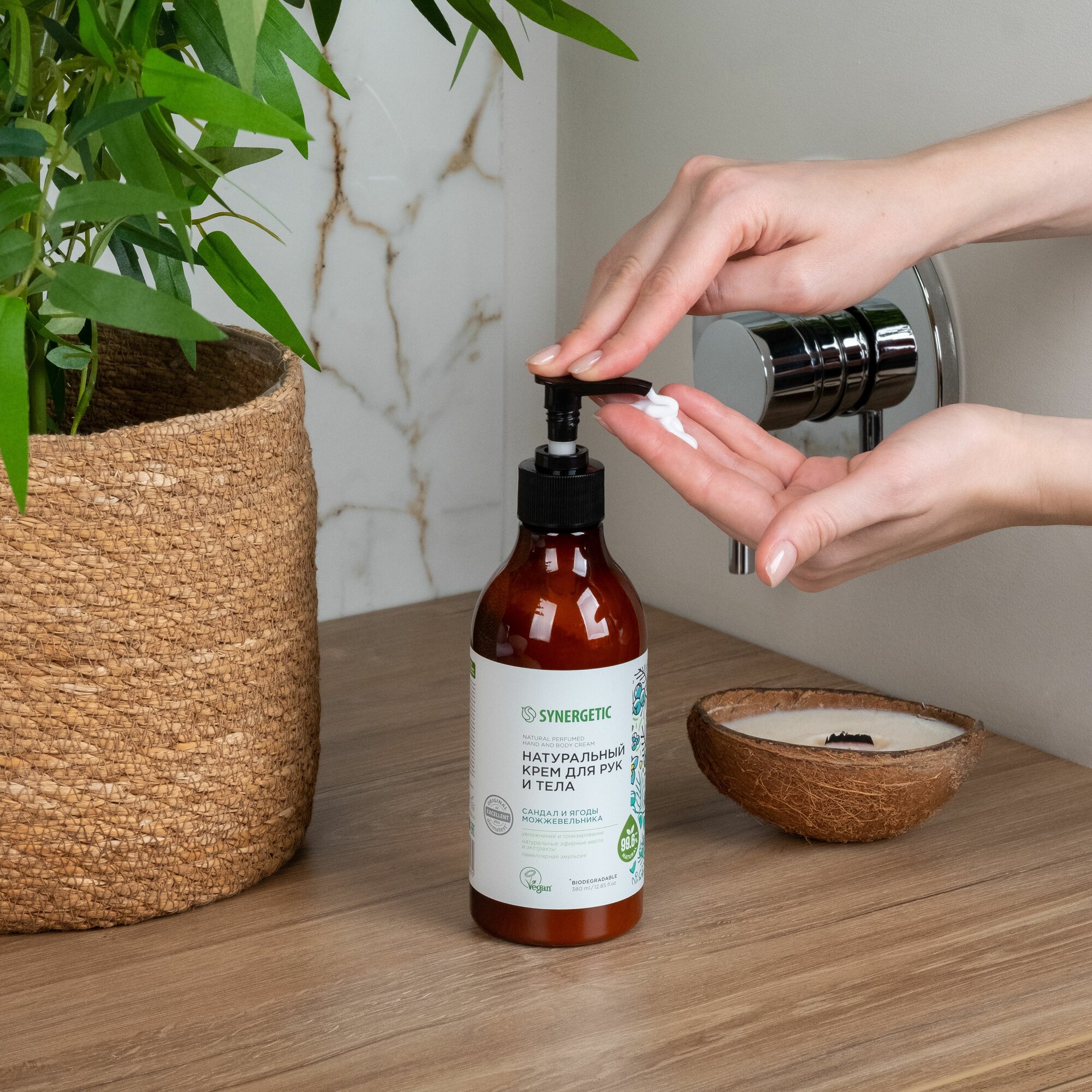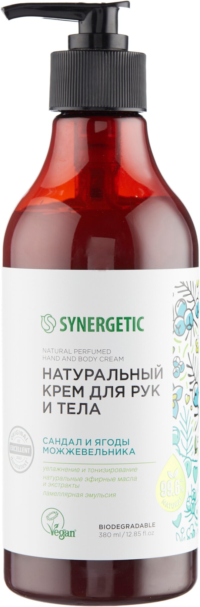 Натуральный крем для рук и тела SYNERGETIC «Сандал и ягоды можжевельника» 380 мл Синергетик
