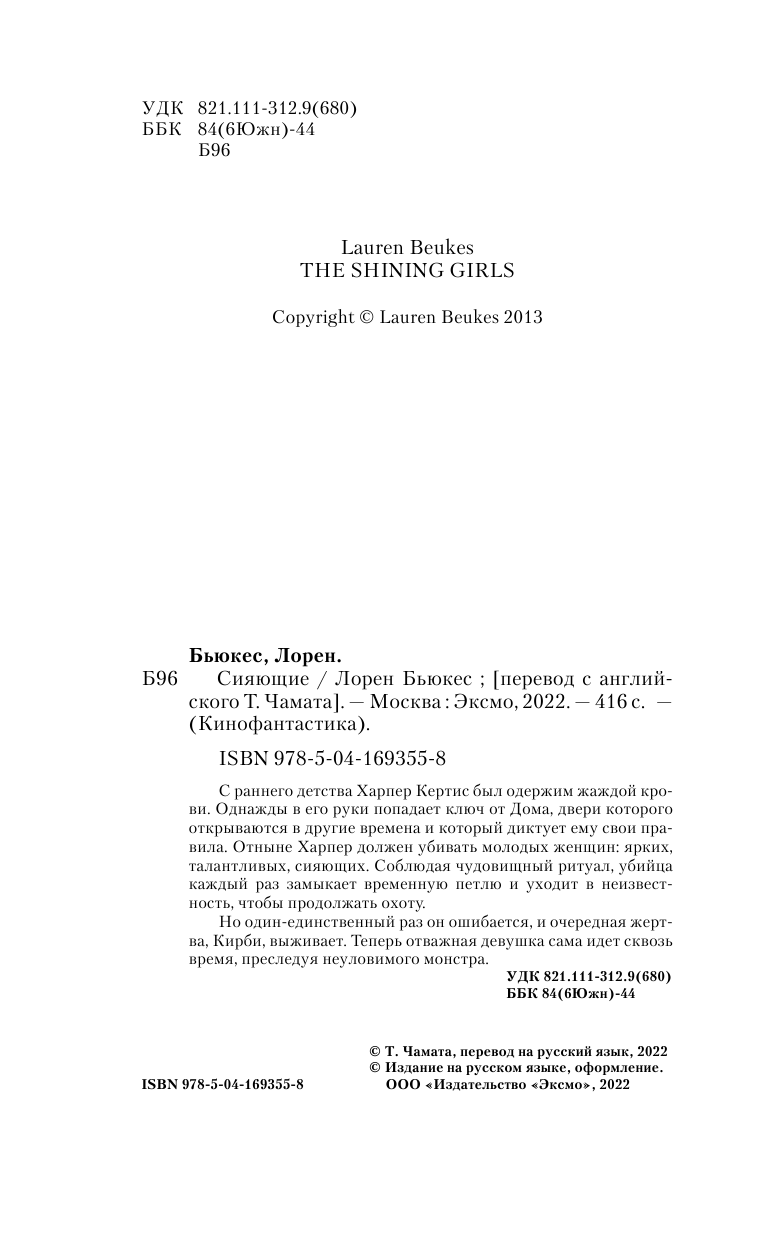 Книга: Сияющие (Лорен Бьюкес); Эксмо, Черным-бело, Редакция 1, 2022