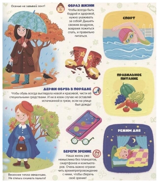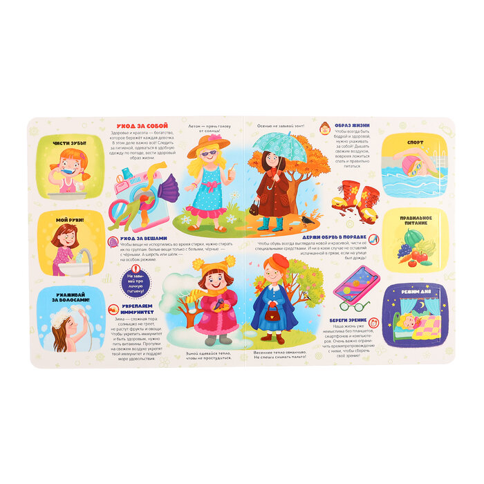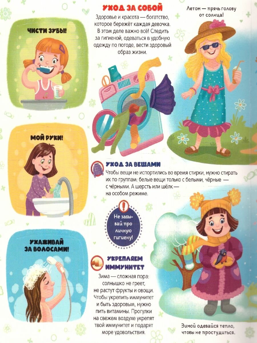Книгу "Кто такие девочки?" купила специально для своей дочки. Понравилось то, что книга с окошками в сочетании с яркими иллюстрациями и плотным картоном. Понравилось то, что рассказывается о таких темах, как правила поведения в общественных местах, правила поведения в театре. О том, что в театре нельзя разговаривать по телефону во время работы актёров. Есть окошки с рассказами об аксессуарах для девочек.